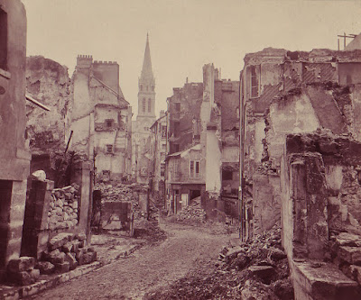 Но версальцам предстояло ещё завоевать улицы Парижа, заграждённые сильными баррикадами, вооружёнными артиллерией. Началась восьмидневная уличная резня, беспощадная с обеих сторон, ужасающая по своим подробностям. Федералисты получили приказ поджигать или взрывать на воздух всякий дом, который вынуждены были очистить. Всецело пожары, омрачившие последнюю борьбу, не могут быть объяснены соображениями защиты; наряду с последними несомненно действовала и жажда мести. Если огонь уничтожил лишь несколько улиц и ряд общественных зданий, то исключительно благодаря быстрому натиску версальцев, которые занимали одну часть города за другой. По-видимому, не все поджоги должны быть поставлены в вину федералистам. Адмирал Сессэ, которого нельзя заподозрить в приверженности к коммуне, призванный свидетелем в следственную комиссию, прямо объявил, что пожар Тюильри, ратуши, министерства финансов и счётной палаты — дело бонапартистов. В этих зданиях хранилась масса всякого рода документов и отчетов, относившихся к периоду до империи.
