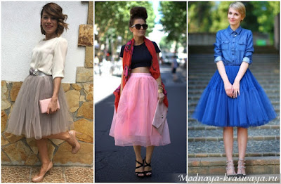 С такой юбкой можно поиграть на контрастах. Например, балетная юбка будет удачно смотреться с кожаными, замшевыми или джинсовыми вещами. Подчеркнуть свою сексуальность можно при помощи сочетания пачки и боди – этот провокационный микс никого не оставит равнодушным.