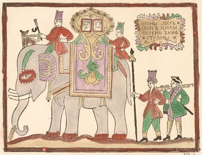 Гравюра эта (известная в двух вариантах) была не единственной; есть еще два менее интересных лубочных изображения примерно того же времени. Появление слонов на улицах российских городов к началу XIX столетия, как это видно уже из процитированного стихотворения, постепенно перестает удивлять ее жителей, а басня И. А. Крылова о моське, облаявшей слона (1808), отсылает не к Эзопу и Лафонтену, а к уличным сценам из жизни Петербурга и Москвы (остается гадать, была ли известна Крылову вышеописанная лубочная картинка, но, во всяком случае, она может служить непосредственной иллюстрацией к басне). С тем же зрелищем связывается появление в русском языке глагола «слоняться» (первоначально «слонов слонять», «слонов продавать»), обозначающего праздную прогулку и ничегонеделание.